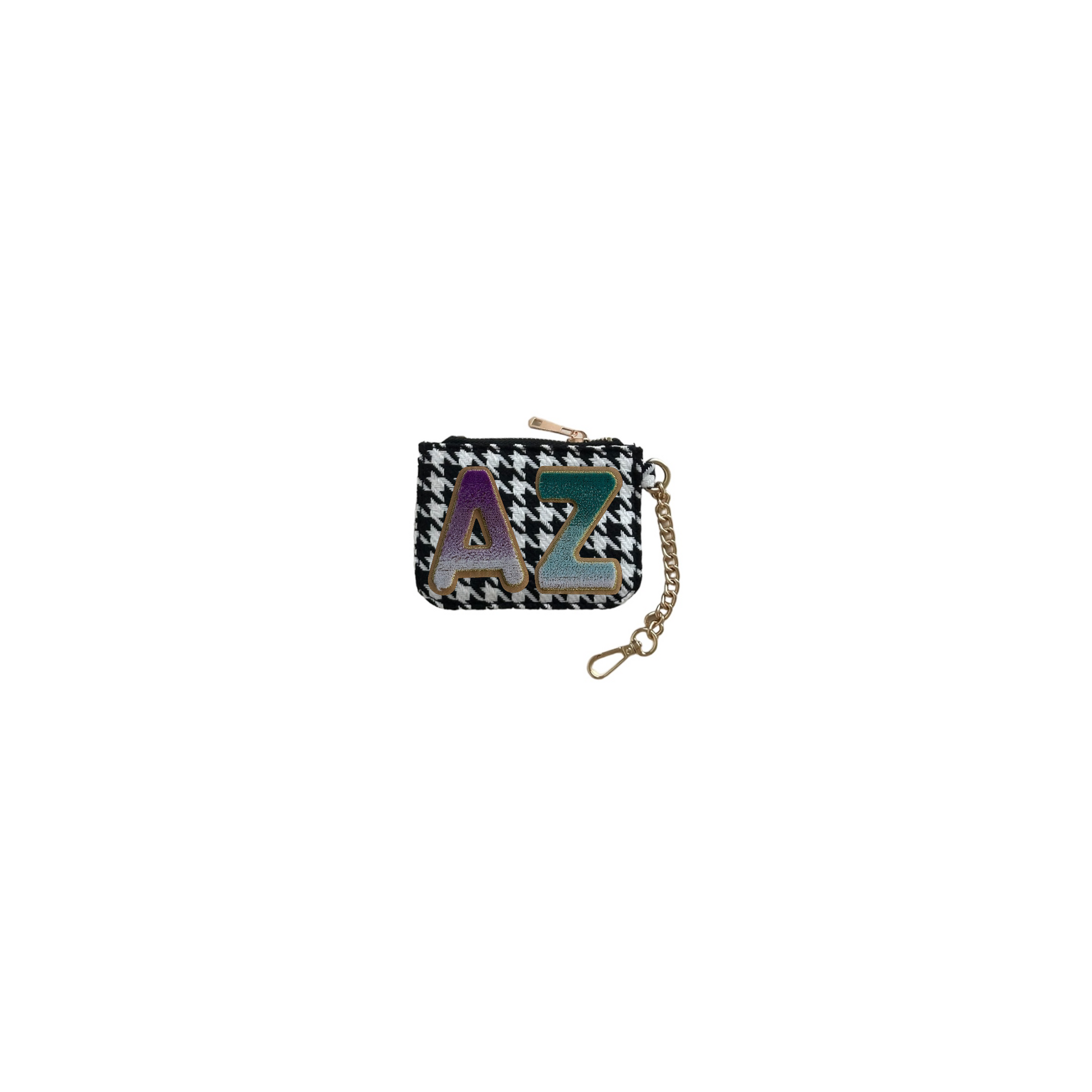 Este práctico y elegante monedero chico es personalizable con una inicial o figura de parche a tu elección, para darle un toque único que refleje tu estilo. Cuenta con un cierre dorado y una cadena que te permite colgarlo y llevarlo cómodamente a todas partes.