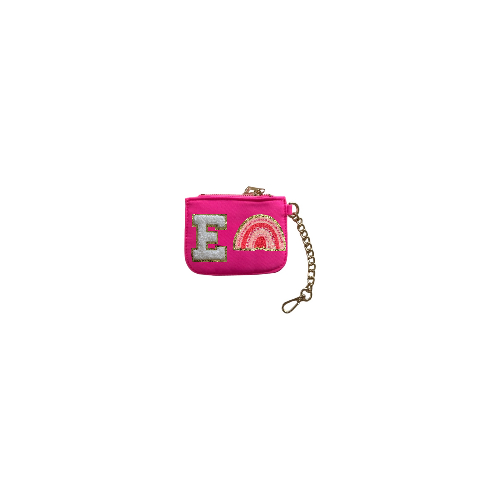 Este práctico y elegante monedero chico es personalizable con una inicial o figura de parche a tu elección, para darle un toque único que refleje tu estilo. Cuenta con un cierre dorado y una cadena que te permite colgarlo y llevarlo cómodamente a todas partes.